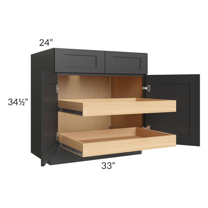 Madison Black Shaker 33" Base Cabinet with 2 Rollout Trays
