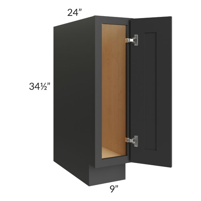 Madison Black Shaker 9" Full Height Door Base Cabinet with Shelf Pullout