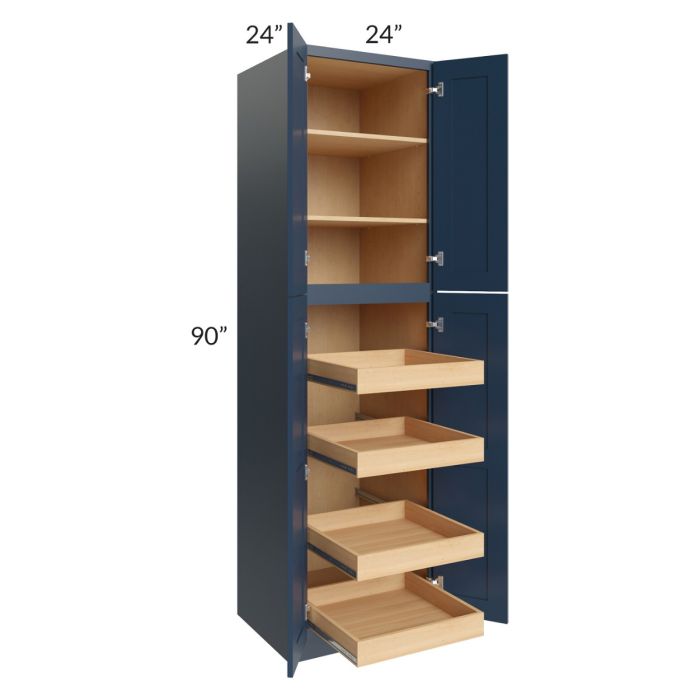 Madison Navy Shaker 24x90x24 Wall Pantry Cabinet with 4 Rollout Trays