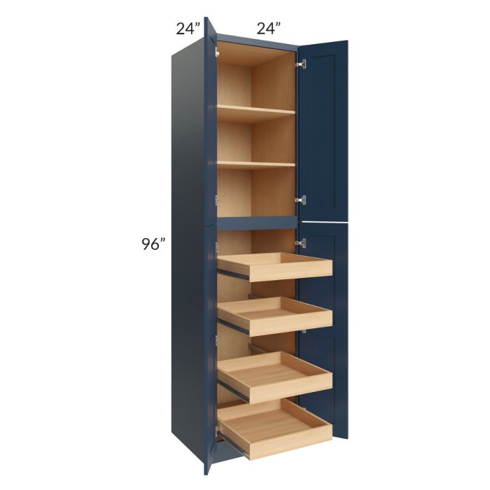 Madison Navy Shaker 24x96x24 Wall Pantry Cabinet with 4 Rollout Trays