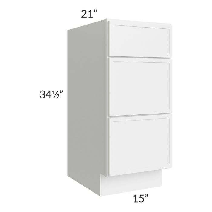 Metro White 15" 3-Drawer Vanity Base Cabinet