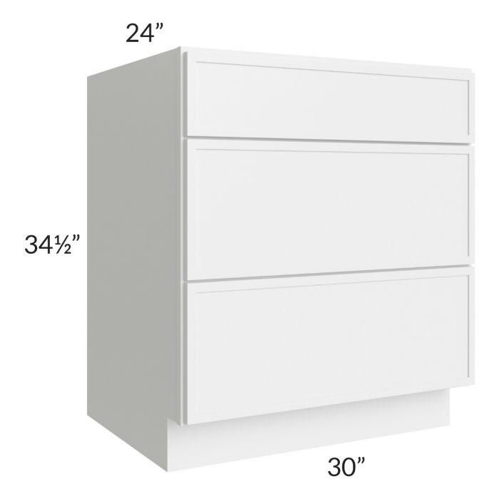Description / Metro White 30" 3-Drawer Base Cabinet