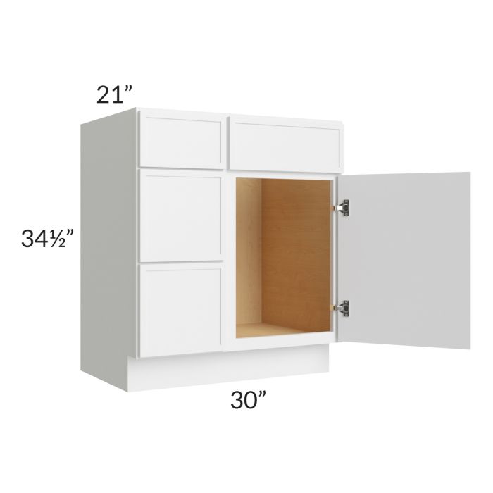 Metro White 30" Vanity Base Cabinet (Drawers on Left)