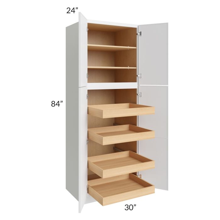 Metro White 30x84x24 Wall Pantry Cabinet with 4 Rollout Trays