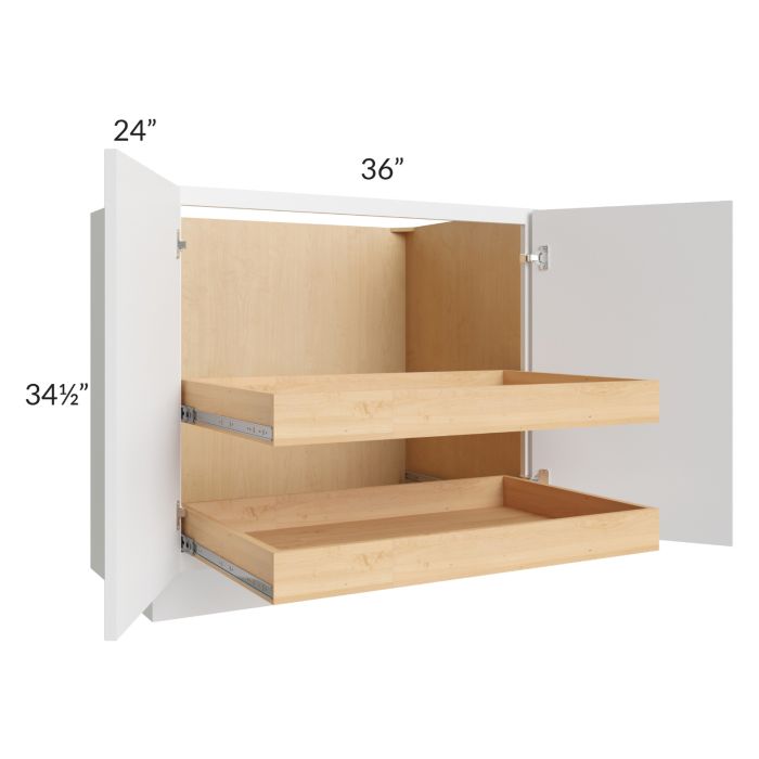 Metro White 36" Full Height Base Cabinet with 2 Rollout Trays