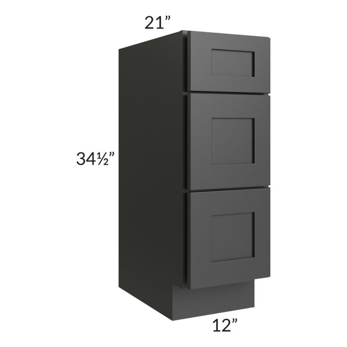 Midtown Black Shaker 12" Vanity 3-Drawer Base Cabinet