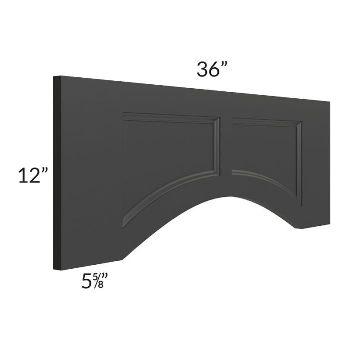 Description / Midtown Black Shaker 36" Arched Recessed Panel Valance (Trimmable)