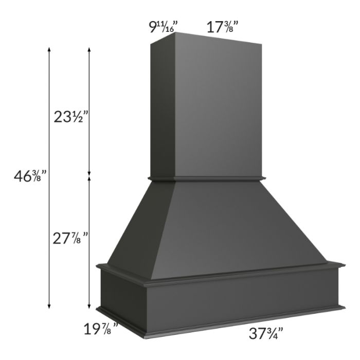Signature style wood hood that comes with a stainless steel liner. The chimney height of 23-1/2" can be trimmed on site, if needed. Blower is not included and would need to be purchased separately. The chimney depth is 9-11/16" and the width is 17-3/8".