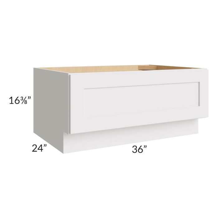 Drawer bench seat cabinet with an overall height of 16-3/8" and a drawer front height of 11-11/4". The cabinet will have the same constrution as other drawer base cabinets with an open top, and the interior drawer depth will be 19-5/8".