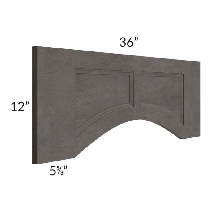 Description / Midtown Dark Grey Shaker 36" Arched Recessed Panel Valance (Trimmable)