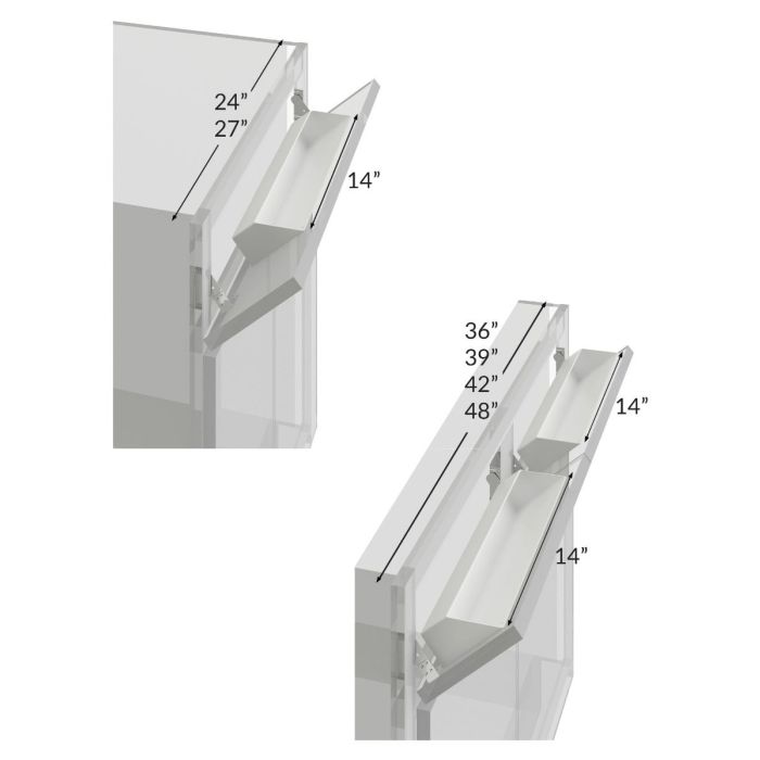 White plastic tilt out tray. 1 tray can be used in a 24" or 27" sink base, or 2 trays can be used in a 36", 39", 42" or 48" sink base.