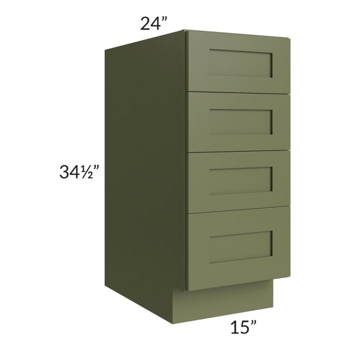 Description / Midtown Hunter Green Shaker 15" 4-Drawer Base Cabinet