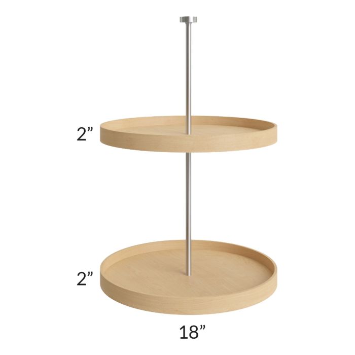 Lazy susan accessory for a 24x30 diagonal wall cabinet. It will have an adjustable metal post and two 18" wood trays. Trays will be 2" high. ***This item should be installed prior to shipment so please specify which cabinet to install this item in under the order comments when checking out or it will ship loose.***