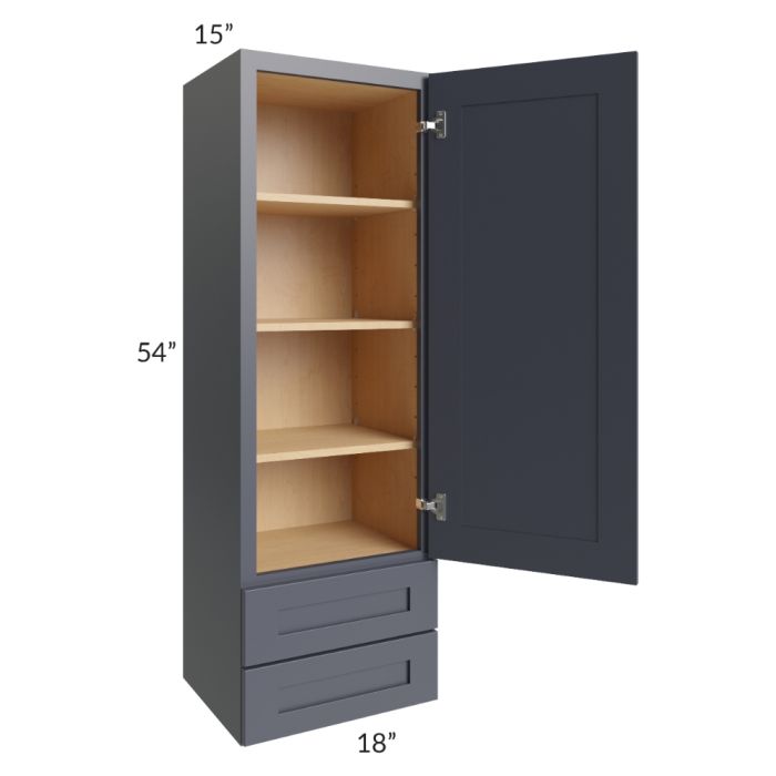 Midtown Indigo Shaker 18x54x15 Wall Cabinet with Drawers