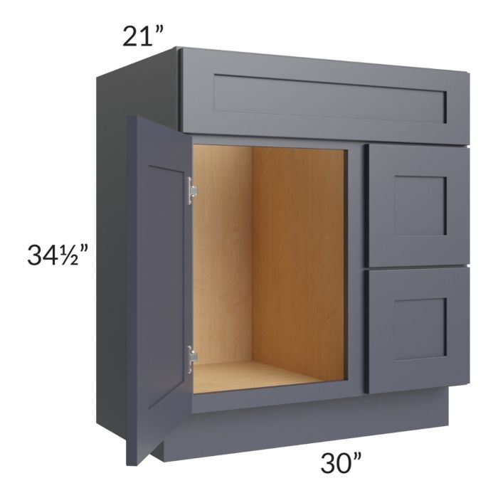 Midtown Indigo Shaker 30" Vanity Sink and Drawer Combo (Drawers on Right)