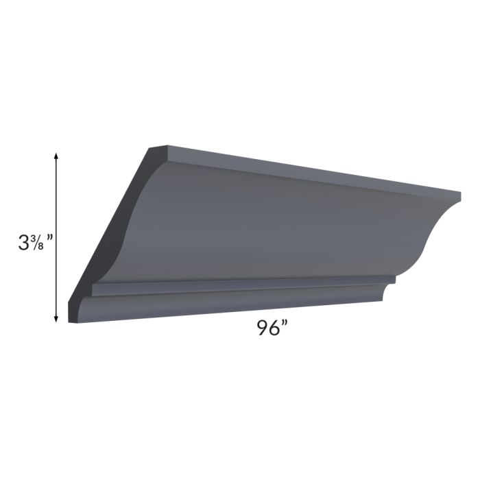 Large crown molding, when installed, it will be 3-3/8" high and will stick out from the cabinet 3".