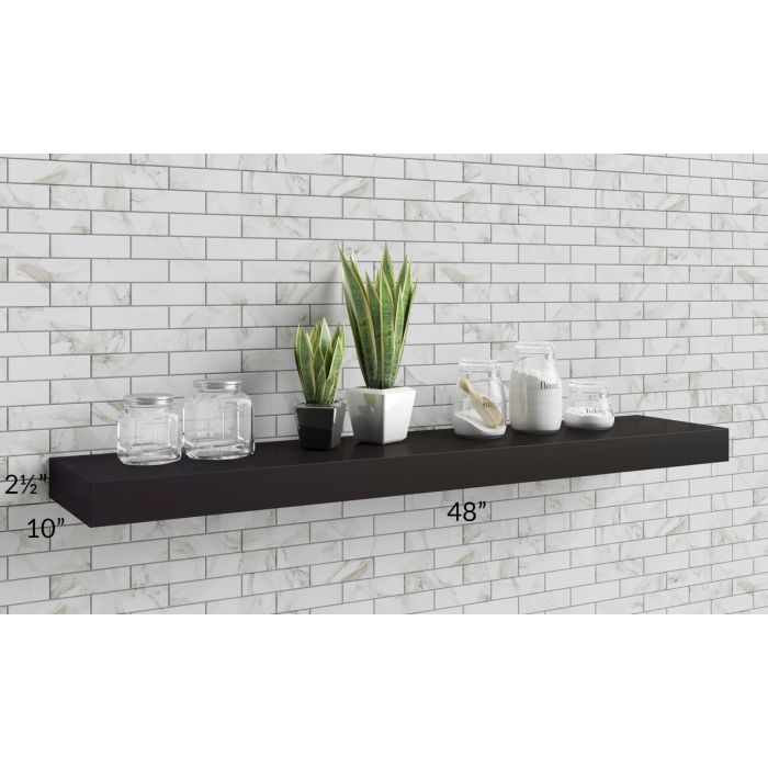 Floating shelf that will include the mounting brackets and hardware. The weight limit is 15 lbs/linear foot as long as the proper installation instructions are followed (instructions will be included with the shelf).