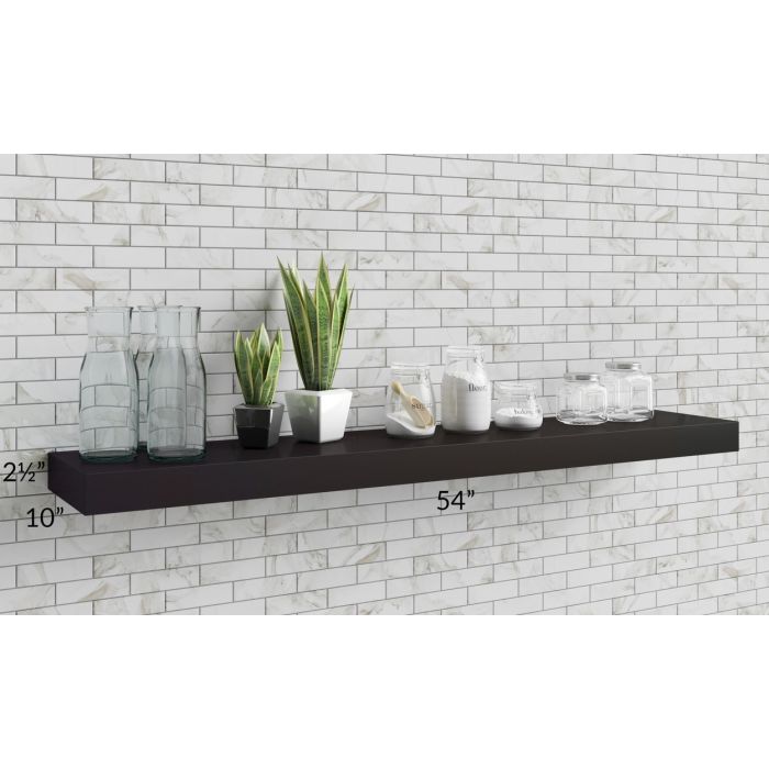 Floating shelf that will include the mounting brackets and hardware. The weight limit is 15 lbs/linear foot as long as the proper installation instructions are followed (instructions will be included with the shelf).