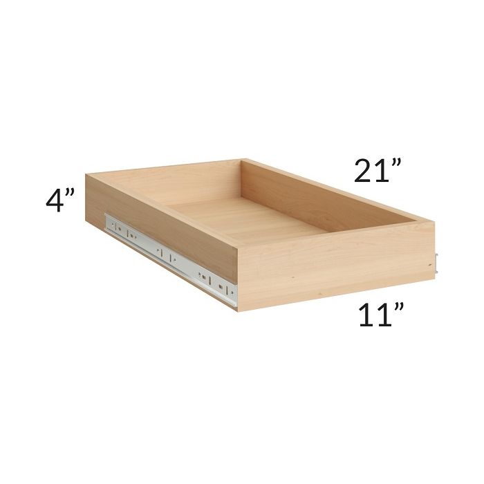 Roll out tray to be used in a 15" base cabinet or wall pantry (up to 4 can be used in a pantry). Interior height of tray is 3-1/4". The roll out comes with full extension, ball-bearing glides (not soft-close). Please note this roll out tray will only work with this collection. ***Please specify which cabinet to install this item in under the order comments when checking out or it will ship loose.***