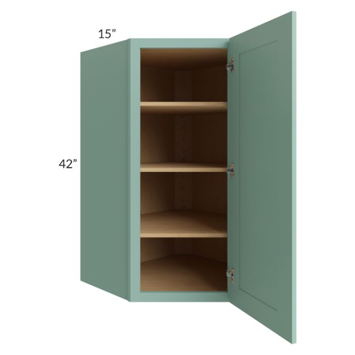 Description / Midtown Mint Green Shaker 27x42 Diagonal Corner Wall Cabinet
