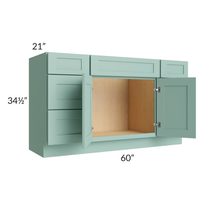 Description / Midtown Mint Green Shaker 60" Vanity Drawer and Sink Combo