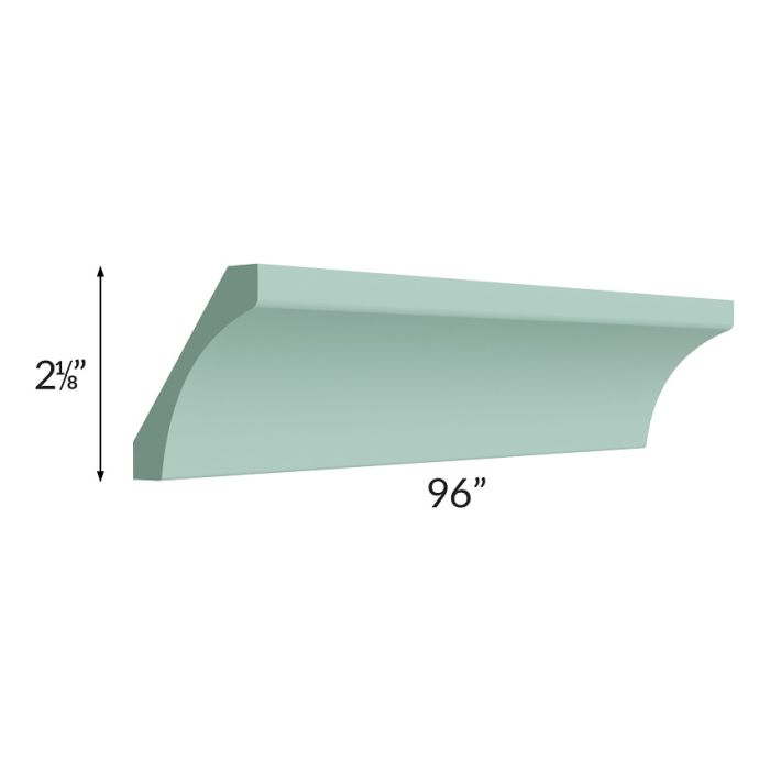 Small cove molding, when installed, it will be 2-1/8" high and will stick out from the cabinet 2-1/8".