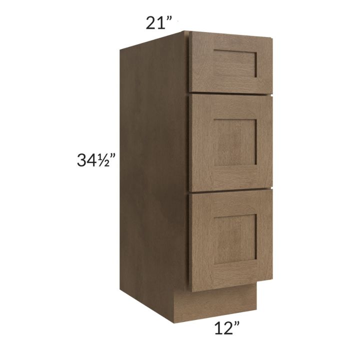Description / Midtown Mocha Shaker 12" Vanity 3-Drawer Base Cabinet