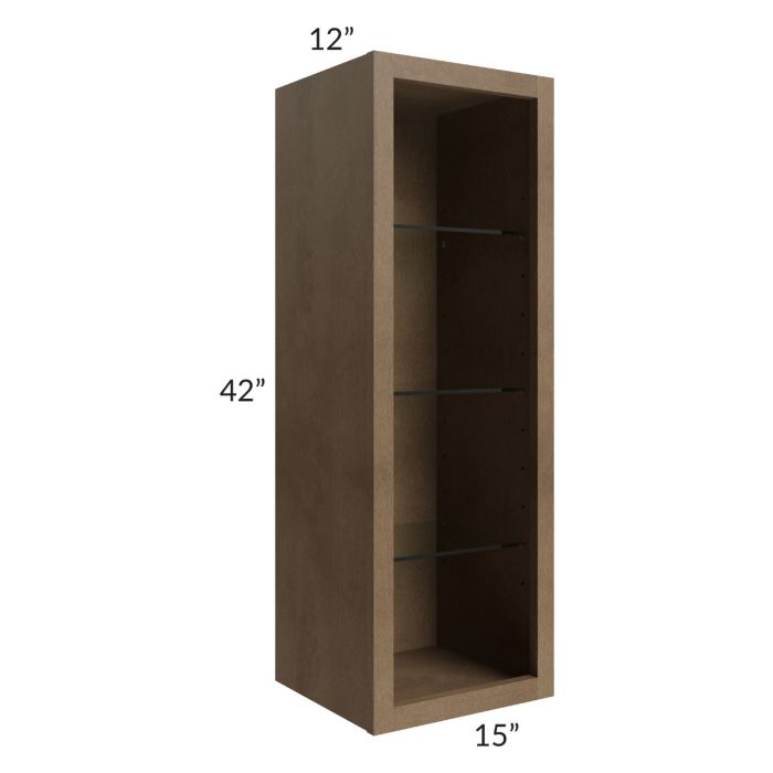 Description / Midtown Mocha Shaker 15x42 Wall Cabinet (No Door) To Be Used With A Glass Door