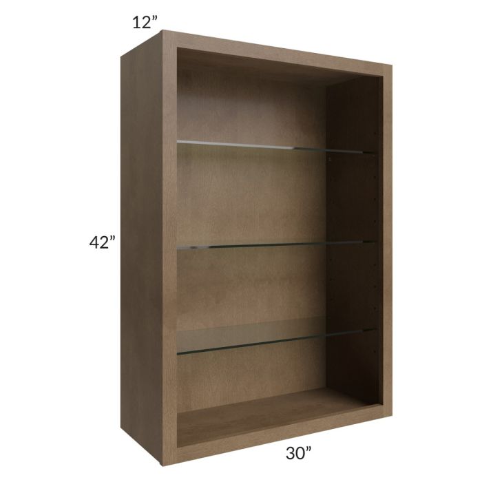 Midtown Mocha Shaker 30x42 Wall Cabinet (No Doors) To Be Used With Glass Doors
