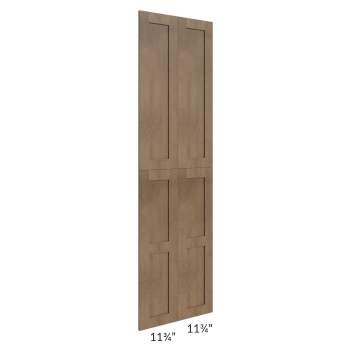 Set of 4 wainscot panels to be used on the exposed side of an 90" cabinet or accessory (pantry, oven cabinet, refrigerator panel, etc...). It will match the door style of the cabinets being ordered.