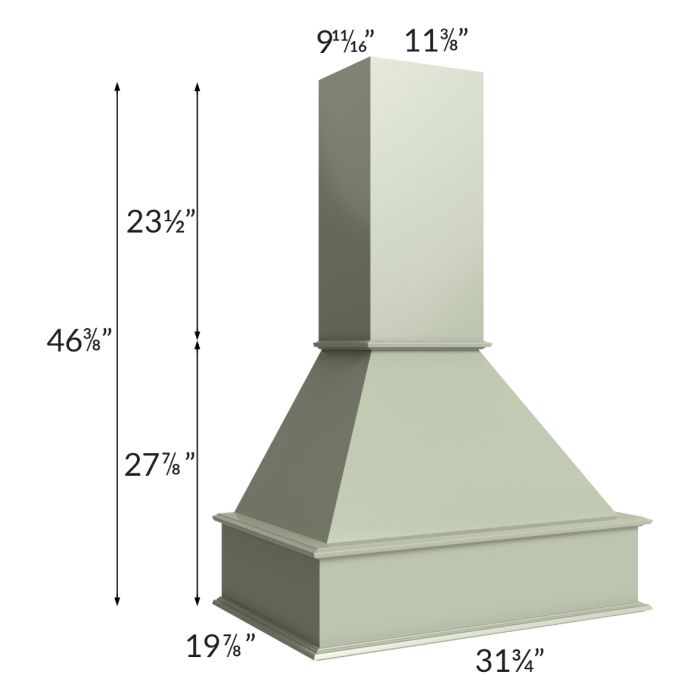 Signature style wood hood that comes with a stainless steel liner. The chimney height of 23-1/2" can be trimmed on site, if needed. Blower is not included and would need to be purchased separately. The chimney depth is 9-11/16" and the width is 11-3/8".