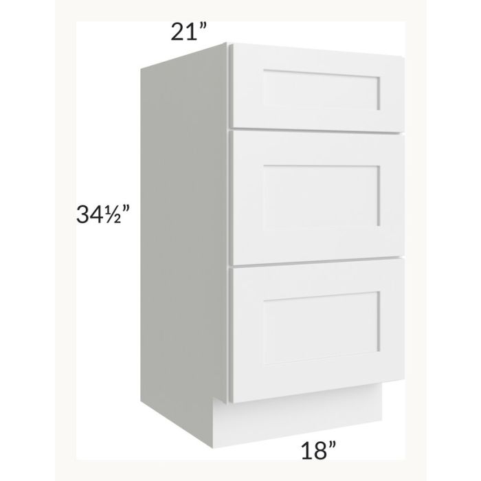 Description / Midtown White Shaker 18" Vanity 3-Drawer Base Cabinet