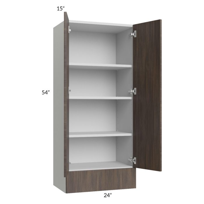 Wall cabinet with (1) 6-3/4" drawer on bottom (drawer front height) and (2) 47" high doors on top. There will be 3 adjustable shelves on the top of the cabinet. The exposed sides have near-flush ends and are unfinished, wainscot panels can be ordered to finish exposed sides. **Note this cabinet has a 15" depth**