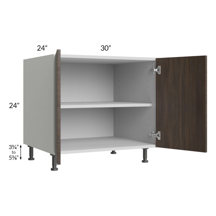 2 door range top base cabinet that comes with (1) adjustable shelf and a full top panel that will support the range that goes on top of the cabinet. Black, adjustable, plastic furniture feet will also be included which will add 3-3/4" to 5-3/8" to the 30" height. *A heat shield will need to be used on both sides of an oven base cabinet or range-top base cabinet to shield the adjacent cabinet boxes from the oven heat. This can be added from the 'View Options' area for this cabinet. Each heat shield will be 30" high and can be cut to size, as needed (sold in quantities of 1, a quantity of 2 must be ordered to receive 2 heat shields).*
