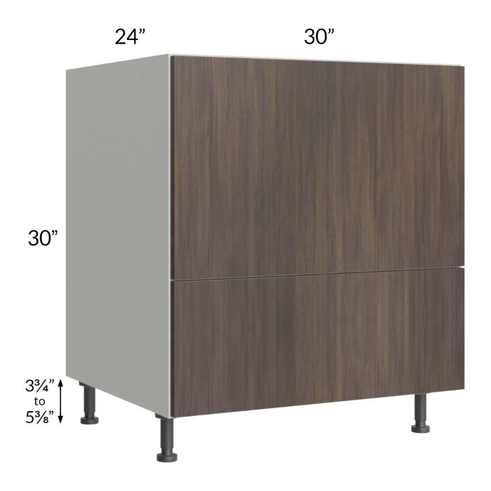 Base microwave cabinet with (1) 8-7/8" high drawer on bottom. The front panel is attached with clips for easy removal and install. Once removed, the opening will need to be cut, the maximumum it can be cut is 28-1/2"W x 19-3/4"H, then the panel will be reattached back onto the cabinet. To avoid damage to the frame and side panels, please apply extra care when cutting the front panel, blue masking tape is the most commonly used to avoid splintering (strong adhesives must be avoided to avoid pulling the finish off). The height from the shelf to the top of the cabinet is 20-7/8". Black, adjustable, plastic furniture feet will also be included which will add 3-3/4" to 5-3/8" to the 30" height.