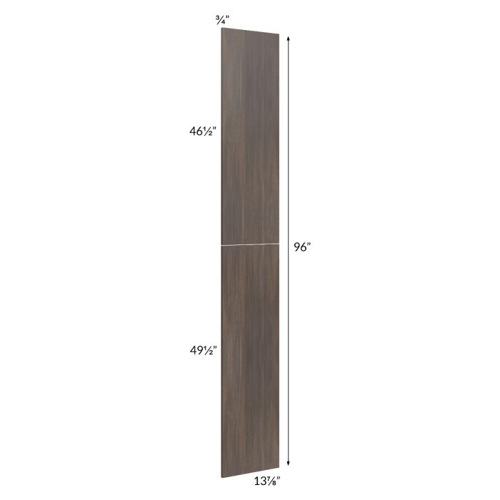 Wainscot tall panel set of 2 doors, to be used on the exposed side of an 96" tall cabinet with a 13" depth. It will match the door style of the cabinets being ordered. The bottom door will be 49-1/2" high and the top door will match the remaining height of the cabinet. Wainscot panels will always be shipped loose and will need to be installed on site. The panel is deep enough to cover the side of the door, giving the door a built in look.