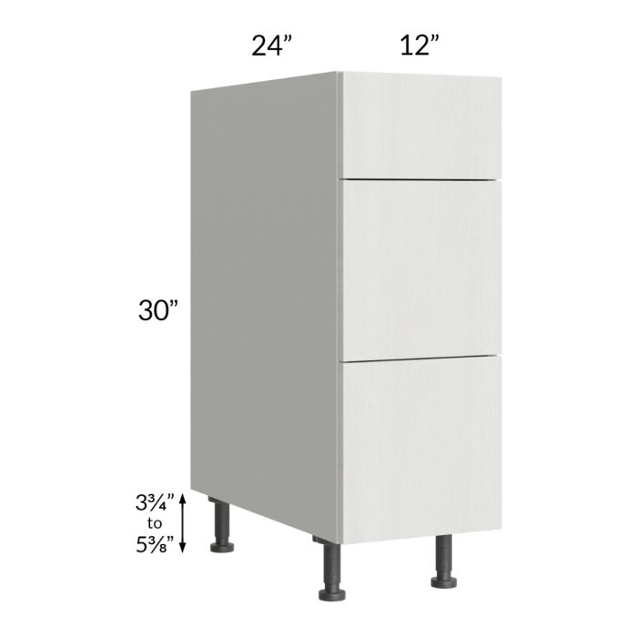 Description / Milan Cream 12" 3-Drawer Base Cabinet