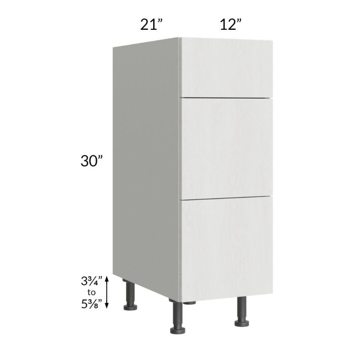 Description / Milan Cream 12" Vanity 3-Drawer Base Cabinet
