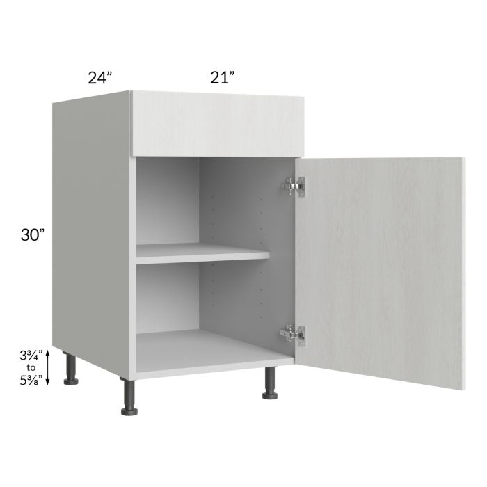 1 door base cabinet with (1) 18" deep adjustable shelves and 1 drawer. Black, adjustable, plastic furniture feet will also be included which will add 3-3/4" to 5-3/8" to the 30" height.