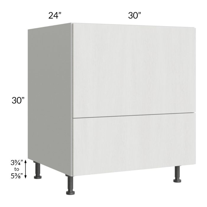 Base microwave cabinet with (1) 8-7/8" high drawer on bottom. The front panel is attached with clips for easy removal and install. Once removed, the opening will need to be cut, the maximumum it can be cut is 28-1/2"W x 19-3/4"H, then the panel will be reattached back onto the cabinet. To avoid damage to the frame and side panels, please apply extra care when cutting the front panel, blue masking tape is the most commonly used to avoid splintering (strong adhesives must be avoided to avoid pulling the finish off). The height from the shelf to the top of the cabinet is 20-7/8". Black, adjustable, plastic furniture feet will also be included which will add 3-3/4" to 5-3/8" to the 30" height.