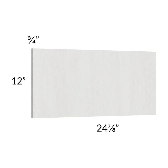 Wainscot wall panel, to be used on the exposed side of a 12" high wall cabinet with a depth of 24". Wainscot panels will always be shipped loose and will need to be installed on site. The panel is deep enough to cover the side of the door, giving the door a built in look.