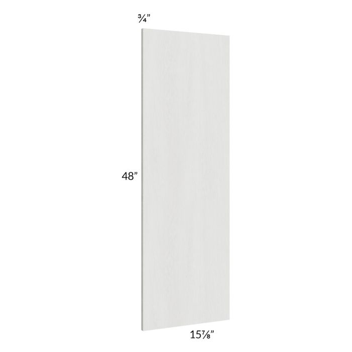 Wainscot wall panel, to be used on the exposed side of a 48" high wall cabinet with drawers, with a depth of 15". Wainscot panels will always be shipped loose and will need to be installed on site. The panel is deep enough to cover the side of the door, giving the door a built in look.