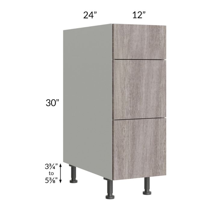 Description / Milan Hazel 12" 3-Drawer Base Cabinet