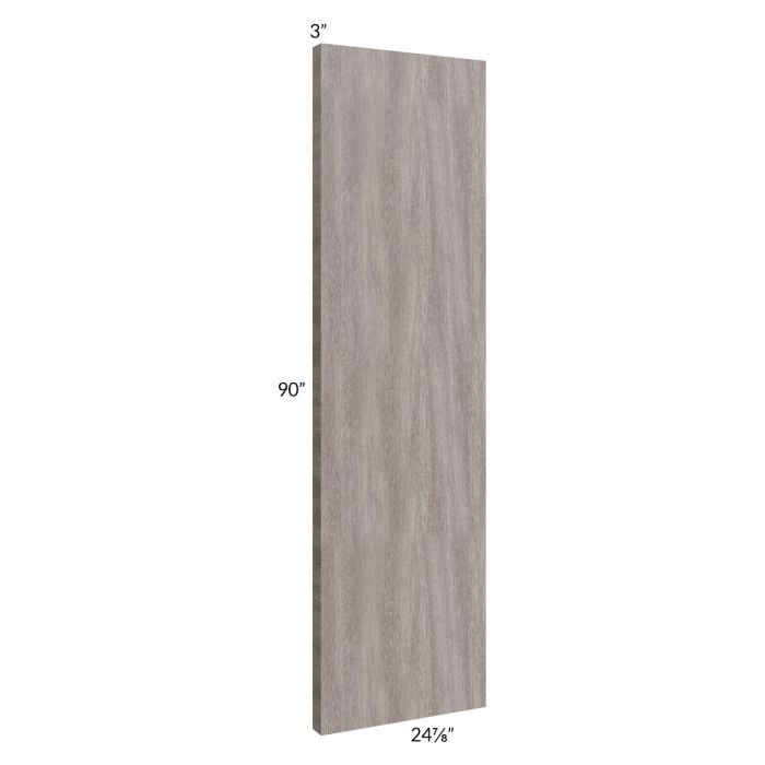 Tall column that can be trimmed on site if needed. The sides will be flush and finished, and the back will be unfinished.