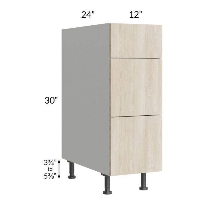 Description / Milan Natural 12" 3-Drawer Base Cabinet