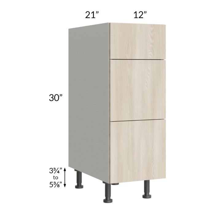 Milan Natural 12" Vanity 3-Drawer Base Cabinet