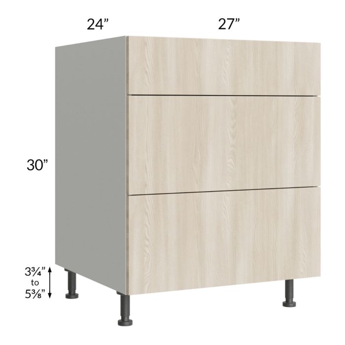 Description / Milan Natural 27" 3-Drawer Base Cabinet