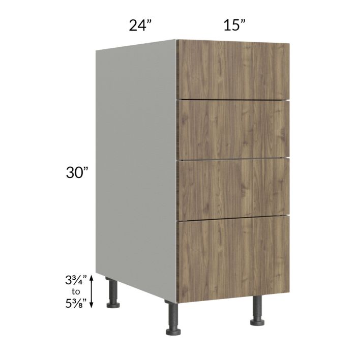 Milan Pecan 15" 4-Drawer Base Cabinet