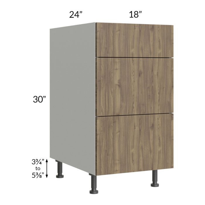Milan Pecan 18" 3-Drawer Base Cabinet