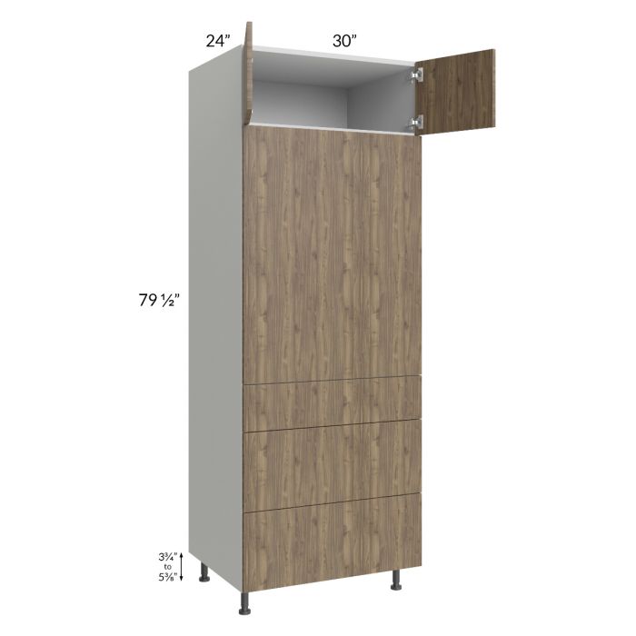 Milan Pecan 30x84 Single Oven Cabinet with 3 Drawers